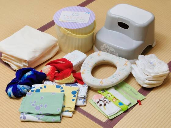 おしり拭き、おむつバケツ、おねしょシーツ(2枚)