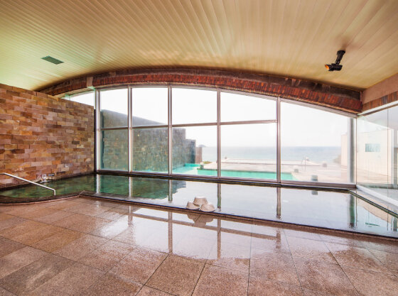 ・雄大な響灘を見渡せる展望露天風呂から眺める夕陽は絶景。