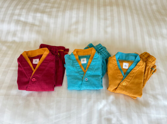 ・お子様用の作務衣をご用意 S・M・Lサイズの3色から選べます。