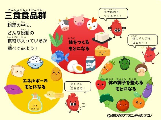 お子さまの健やかな成長をサポートするため、三食食品群の案内を表示。