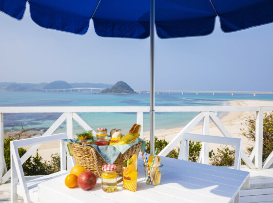 海辺でピクニックを楽しむように朝食を召し上がることができます。