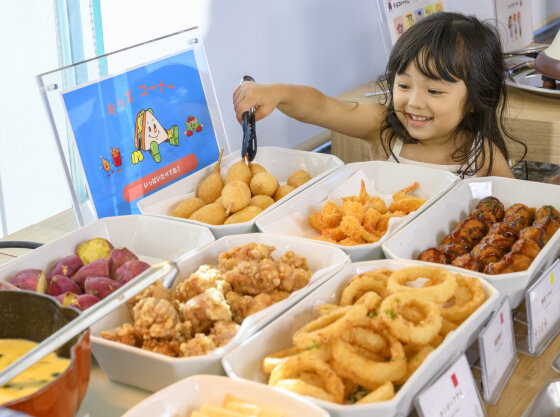 自分で楽しく料理を選んでいただける、お子さまビュッフェコーナー。