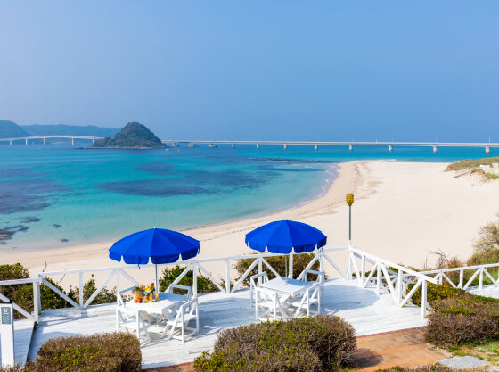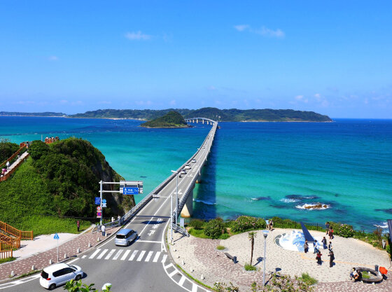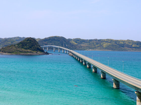 離島架橋として国内でも有数の長さを誇り海の上を走るような爽快感を味わえる。