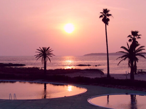 目の前に広がるコバルトブルーの海と息をのむほどの美しい夕陽。