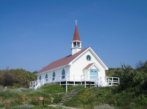 角島にある礼拝堂 映画のロケセットとして今でも残ってます。