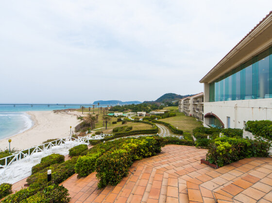 ・中庭テラスは、目の前に広がる海を眺めながらお散歩できます。ちょっと疲れたらテラスで休憩むできます。