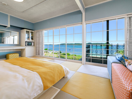 ・到着時にウェルカムドリンクをご用意しております。角島大橋が目の前に広がるラウンジで旅の疲れをお痩せます。
