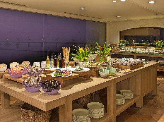 当館のお食事はビュッフェスタイルになっております。離乳食から完了期のお子さま向けに豊富なメニューを取り揃えております。お子さまの成長に合わせたバランスの良い食事を楽しめるよう「三食食品群」の案内と安心して召しあがれるようメニューには8大アレルゲンを明記しております。お子さまの使いやすい器・フォーク・スプーンをご用紙しておりますのでご家族みんなで、ゆっくりと心ゆくまでお食事をお楽しみください。