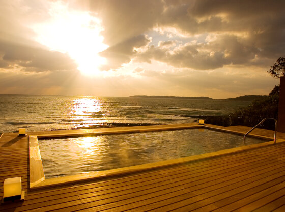 露天風呂から望む夕焼けの絶景は、一見の価値あり。