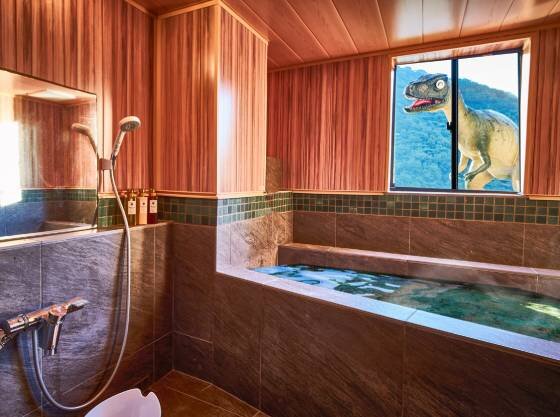 ティラノサウルス出現!?わくわく恐竜風呂体験