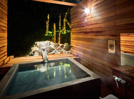 自然に囲まれた竹灯りが美しい貸切露天風呂