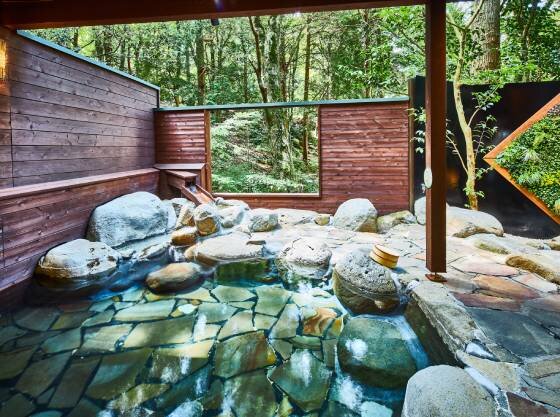 渓流の音と森の緑に包まれた露天風呂