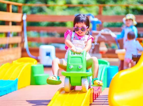 青空の下、キッズコースターやすべり台で大はしゃぎ!
