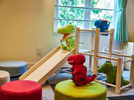お部屋には「ジャングルジム付きすべり台」や「絵本・乳幼児向けおもちゃ」などを備えており、パパママの目が届く範囲でお子様がのびのび遊べる環境をご用意しております。