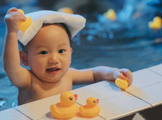 音楽の流れる貸切風呂には、バスチェアやベビーソープ、おもちゃなどご用意しております。