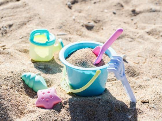 小さなお子様も安心、無料の砂遊びグッズでビーチデビュー。