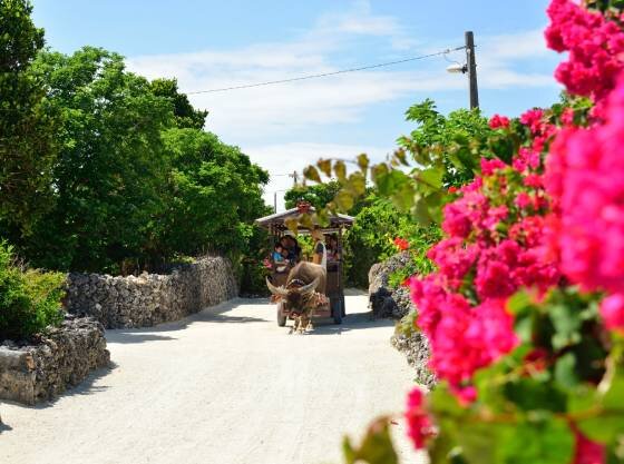 沖縄の原風景が広がる竹富島。水牛車でのどかな島時間を満喫できます。