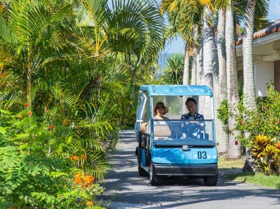 ■広大な敷地内の移動には、便利なカート送迎をご利用ください。お子様にも楽しい移動時間をお届けします。