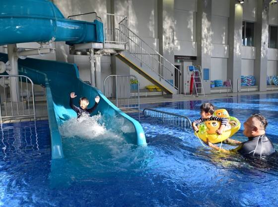 ■天気が悪い日や気温の低い日も安心。ウォータースライダーやお子様用プールのあるインドアプールで、家族みんなで楽しく過ごせます。